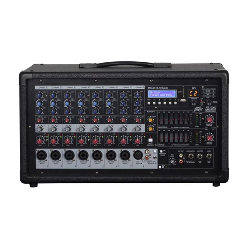 Mezclador potenciado todo en uno XR® 1000LEl Peavey XR 1000L es un revolucionario mezclador autoamplificado todo en uno que brinda todo lo que un músico necesita, incluidas hasta ocho entradas combinadas XLR y 1/4 “utilizando los preamplificadores de micrófono galardonados de Peavey y 500 vatios por canal para una reproducción de audio nítida. El Peavey XR 1000L utiliza características exclusivas y patentadas como Mid Morph para ayudar con precisión a mejorar el tono y la claridad de las voces. La retroalimentación se identifica y elimina rápida y fácilmente con el ecualizador gráfico de 7 bandas de Peavey combinado con nuestro sistema patentado y revolucionario FLS Feedback Locating System. El XR El 1000L está equipado con la tecnología Kosmos-C exclusiva de Peavey, que mejora drásticamente tanto el extremo bajo como el alto del espectro de audio. El efecto digital de 24 bits integrado con interruptor de pedal complementa la unidad ya repleta de funciones. Conecte casi cualquier cosa a este versátil mezclador a través de la placa integrada. 1/4″, RCA y miniconectores de 1/8”