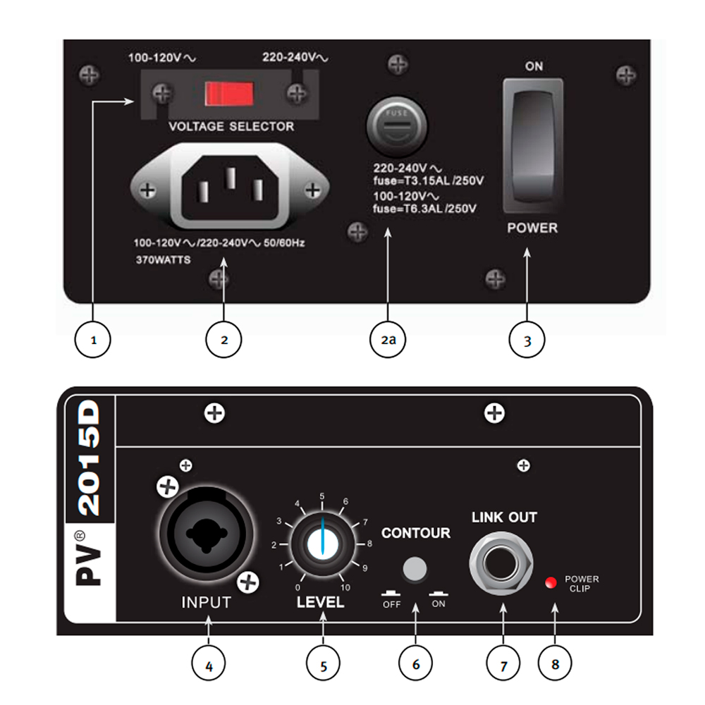 El PV 2015D es un sistema de bocinas de sonido de tres vías con alimentación propia basado en doble woofers Sheffield® de 15 ”y un controlador de compresión dinámica de diafragma de titanio RX ™ 14 montado en una guía de onda cuadrática asimétrica Peavey® con un patrón de cobertura De 100 ° por 50 ° El PV 2015D cuenta con una sección de potencia Clase-D que proporciona hasta 800 watts pico disponibles de potencia para el sistema, con compresión DDT ™ Los jacks de entrada proporcionados son una entrada balanceada XLR y un 1/4 ” Teléfono con un control de volumen y un interruptor de contorno para aumentar los bajos y máximos.