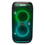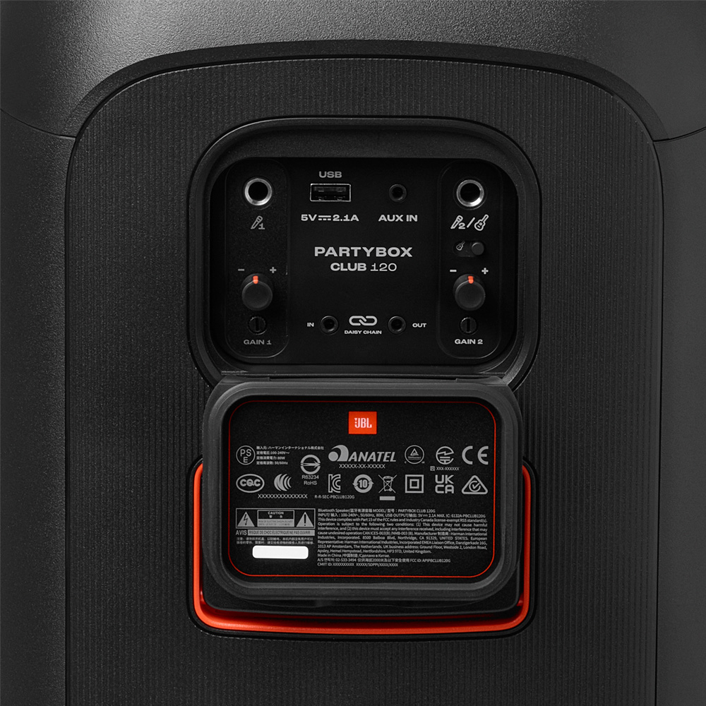El JBL PartyBox Club 120 convierte cualquier espacio en una fiesta. El potente sonido JBL Pro inunda el aire mientras que un espectáculo de luces adaptables con luces estrelladas, pistas de luz frías y efectos estroboscópicos se sincroniza con tu ritmo. Empareja al instante cualquier dispositivo Bluetooth y transmite tu lista de reproducción favorita de la fiesta, o usa las entradas de micrófono y guitarra para compartir tu propio sonido. De cualquier forma, puedes dirigir el flujo de la fiesta con divertidos efectos interactivos con la aplicación JBL PartyBox. El asa plegable ergonómica hace que el PartyBox Club 120 sea fácil de llevar contigo a cualquier parte y la construcción a prueba de salpicaduras significa que no se verá afectado por una pequeña lluvia. Ofrece hasta 12 horas de reproducción, y si la fiesta sigue fluyendo para entonces, solo tienes que cambiar la batería reemplazable para mantener la música y las luces. Para disfrutar de aún más tiempo, combina dos JBL PartyBox Club 120 para disfrutar de un escenario de sonido más amplio, o utiliza la aplicación JBL PartyBox para conectar varios altavoces compatibles con JBL Auracast de forma inalámbrica. Disfruta de la fiesta con el JBL PartyBox Club 120.