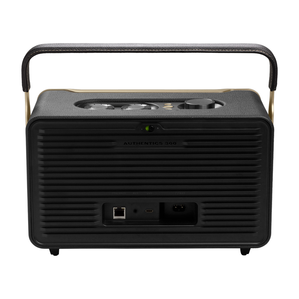 Disfruta de un estilo retro, un audio increíble y dos asistentes de voz integrados* en cualquier lugar de tu casa. Con la carcasa de imitación de cuero, la práctica asa metálica y la batería recargable integrada del altavoz JBL Authentics 300, puedes llevar tu música contigo: desde la cocina para tu lista de reproducción de la cena hasta el dormitorio para tu podcast relajante. Su diseño retro inspirado en los años 70, con la icónica rejilla Quadrex, destaca dondequiera que lo coloques. Al igual que su amplio escenario sonoro, sus agudos nítidos y sus graves profundos. Con el Asistente de Google y Amazon Alexa disponibles simultáneamente*, puedes reproducir tu música favorita, controlar tus dispositivos inteligentes del hogar y mucho más, con manos libres, solo con tu voz.