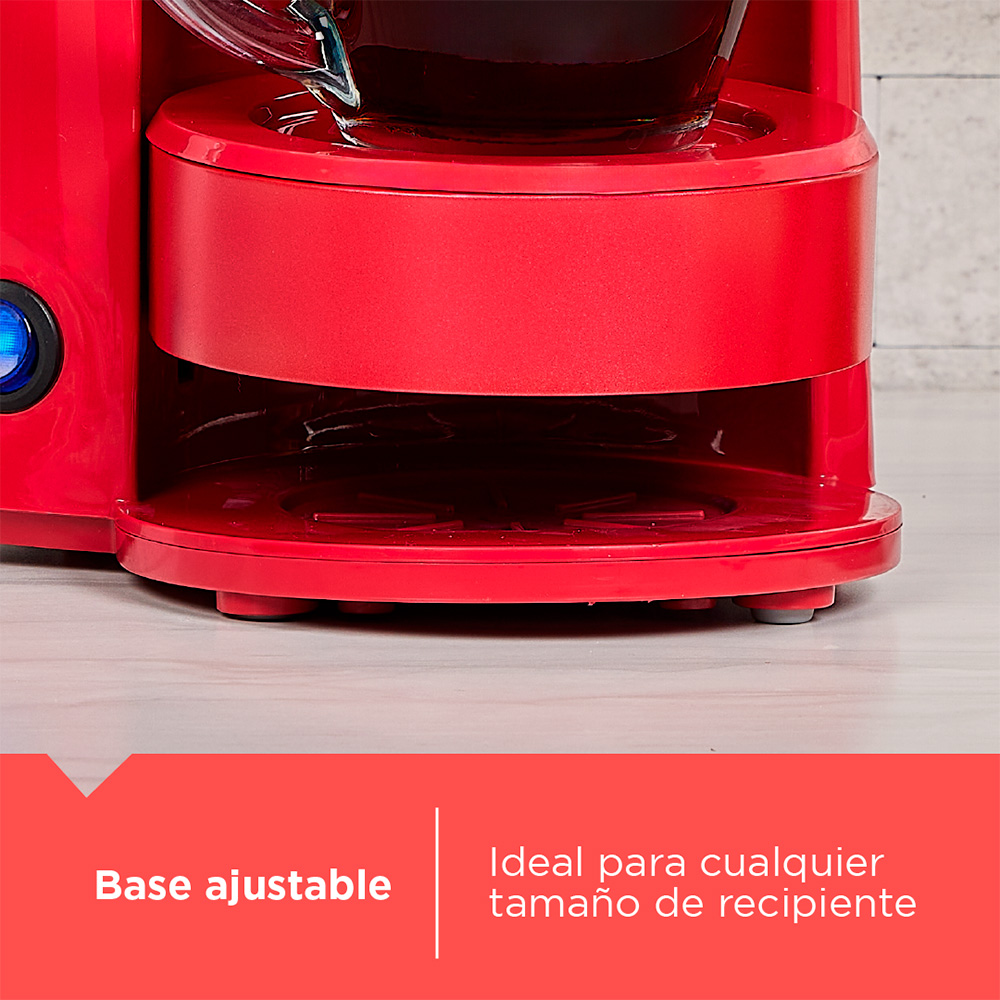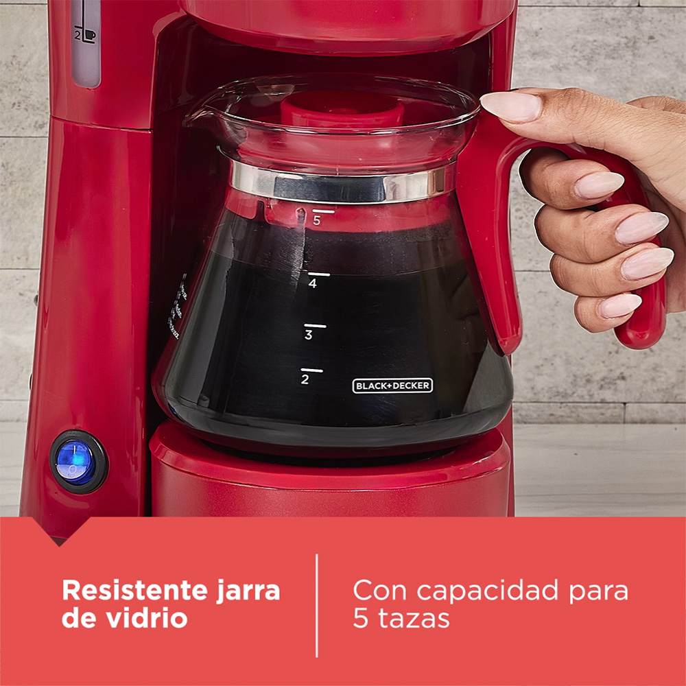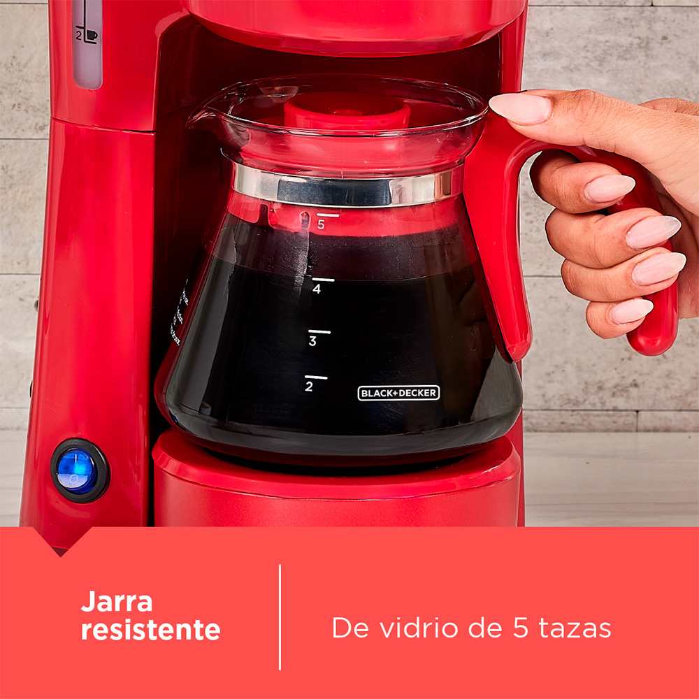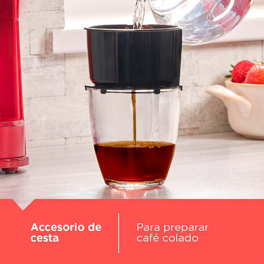 Transforma tu rutina con la Estación de Café 4 en 1 Black+Decker Cherry Collection. Prepara café directamente en tu taza favorita, termo portátil, jarra de 5 tazas o utiliza el sistema de filtración a mano