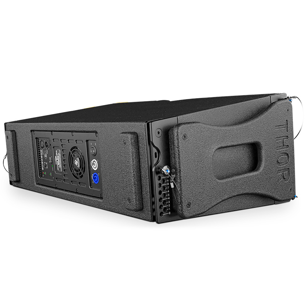 Este sistema de audio lineal activo de 2 vías, con diseño simétrico, está optimizado para eventos masivos, ofreciendo una cobertura amplia de 100° horizontal y 10° vertical. Incorpora transductores FAITAL PRO de alta calidad, con dos woofers de 8″ para medios y un driver de neodimio de 3″ para agudos, alcanzando un SPL de 134 dB y una respuesta de frecuencia de 85 Hz a 16 kHz. Su amplificación de 600 W por canal (1,200 W totales) y filtros FIR avanzados garantizan un sonido preciso y potente, mientras que el DSP digital con presets para arreglos de 4 y 8 cajas permite una configuración rápida y óptima. Fabricado en madera de abedul con recubrimiento PROFLEX resistente a rayaduras, golpes y humedad, integra un sistema de colgado de 4 puntos para hasta 12 cajas en arreglo lineal, combinando durabilidad, potencia y versatilidad para uso profesional.