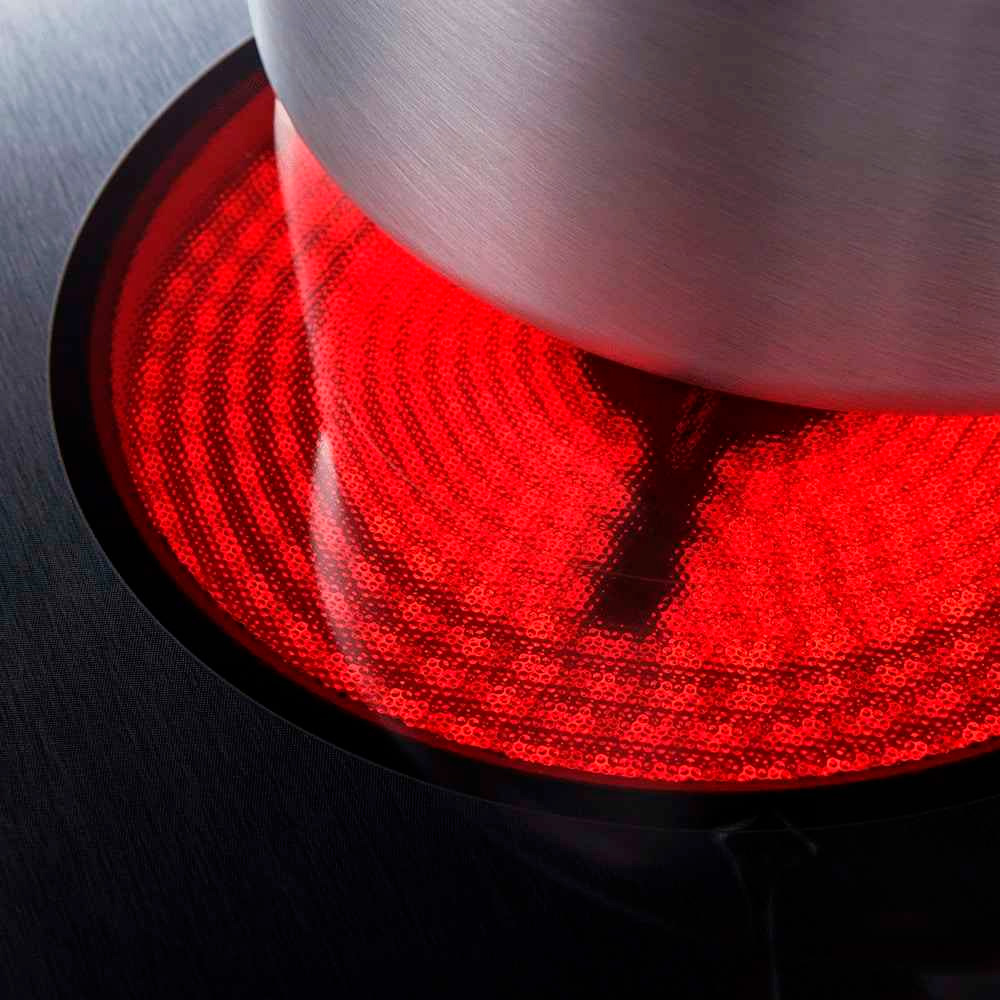 Con sus 4 quemadores de vitrocerámica en color negro.