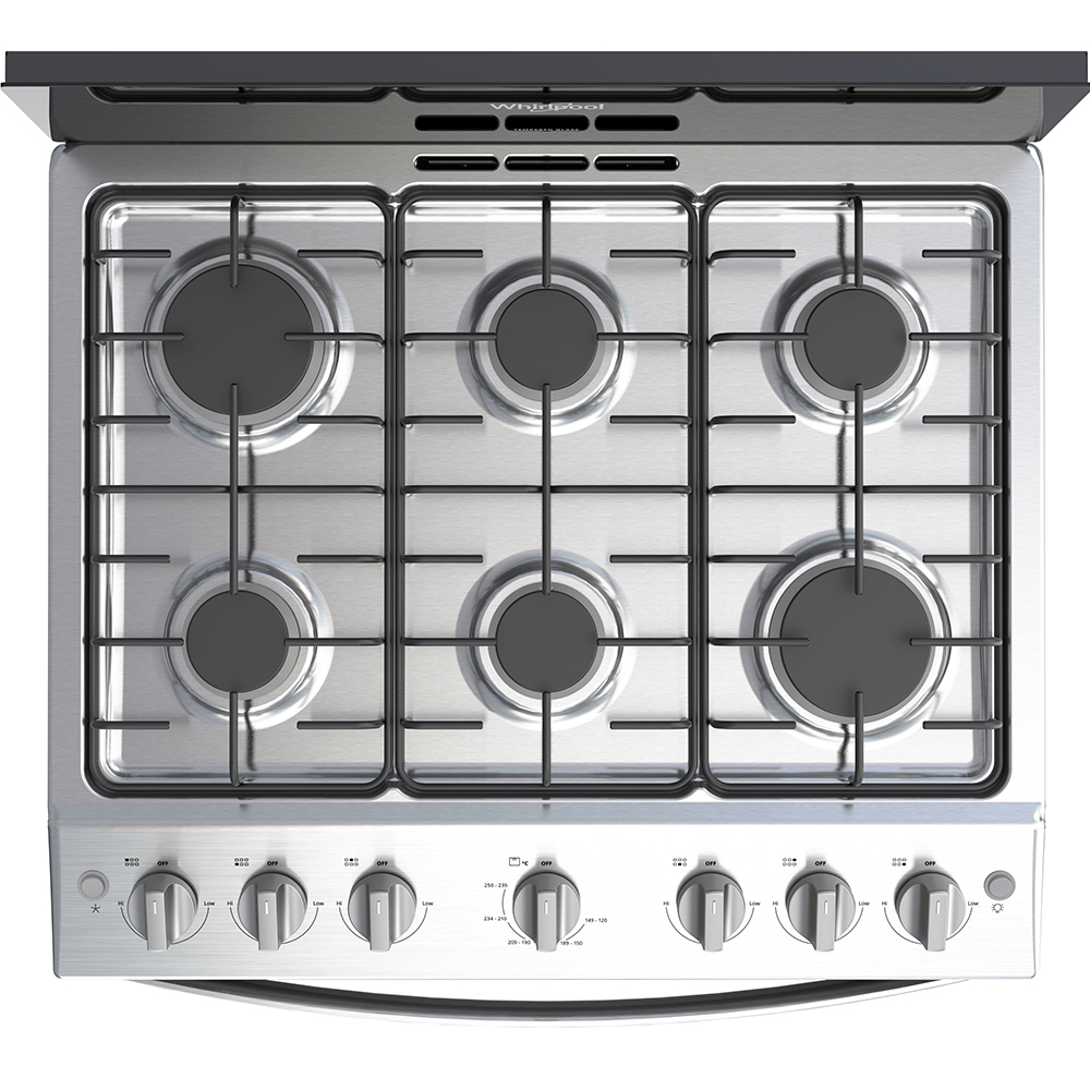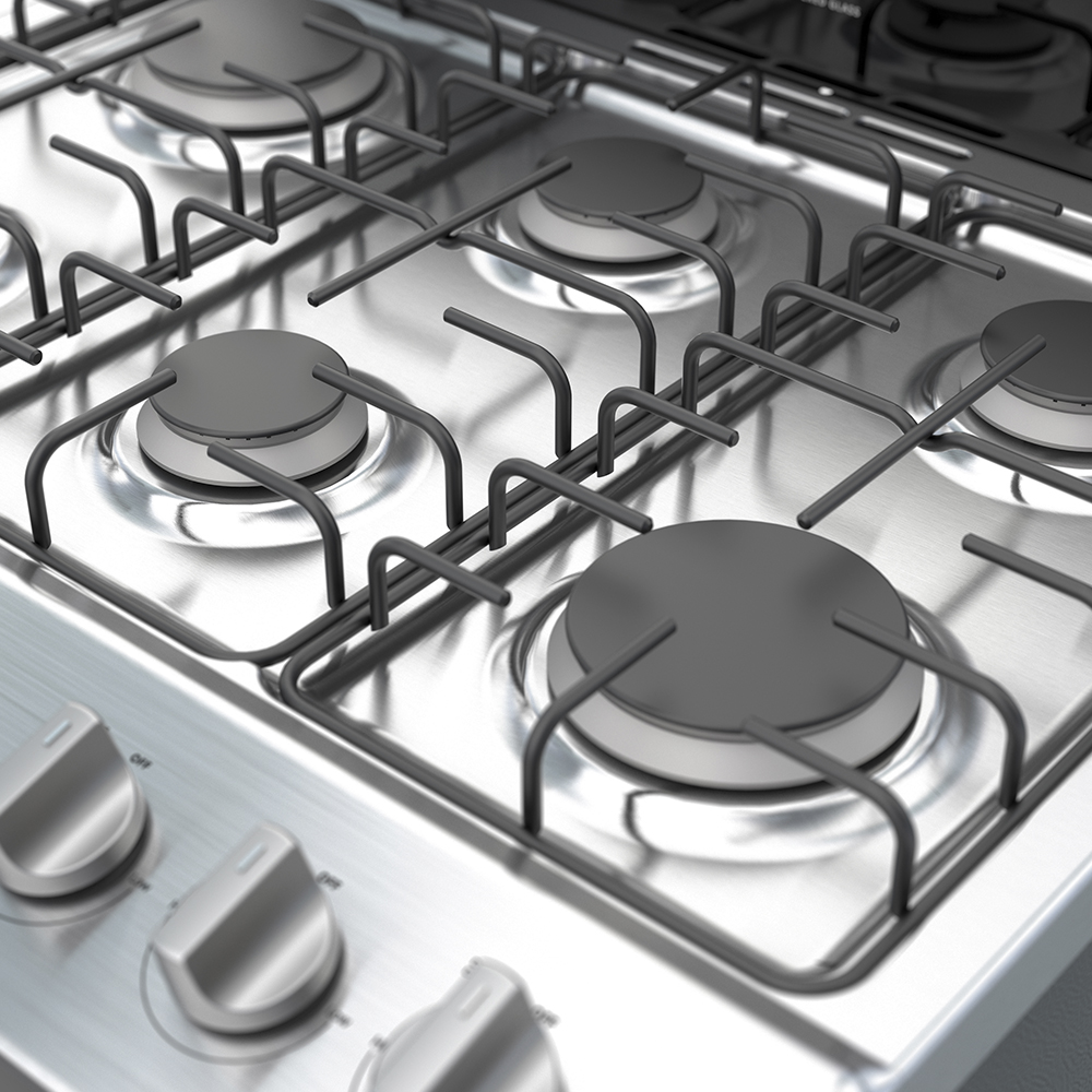 6 hornillas, a Gas, color Silver, encendido electrónico, perrillas de alambrón mate, quemadores 4 estándar + 2 Súper