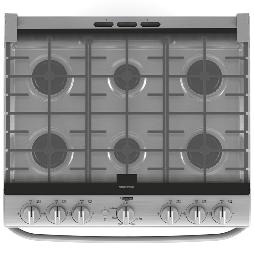 6 hornillas, a Gas, color Silver, Tecnología Ultimate, Perfect Cook, Comal teflonizado, 4 quemadores Jumbo