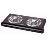 Doble hornilla, 1499 watts, controles de temperatura ajustables, luz indicadora de funcionamiento, pies antideslizantes