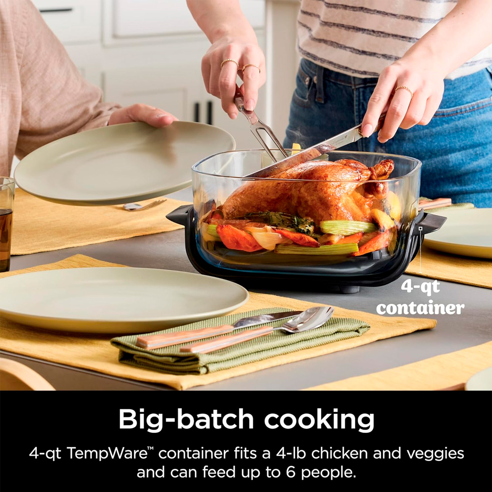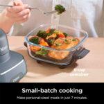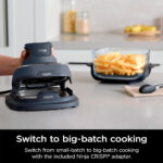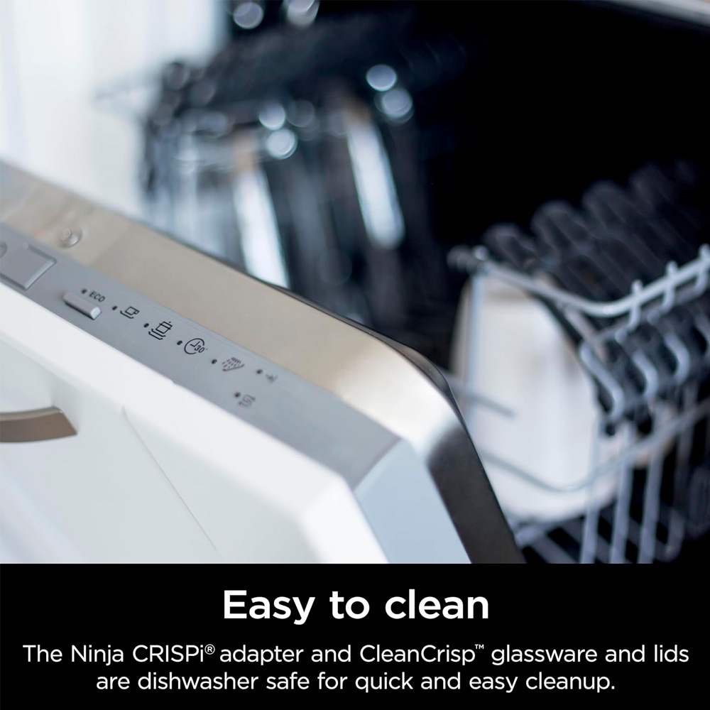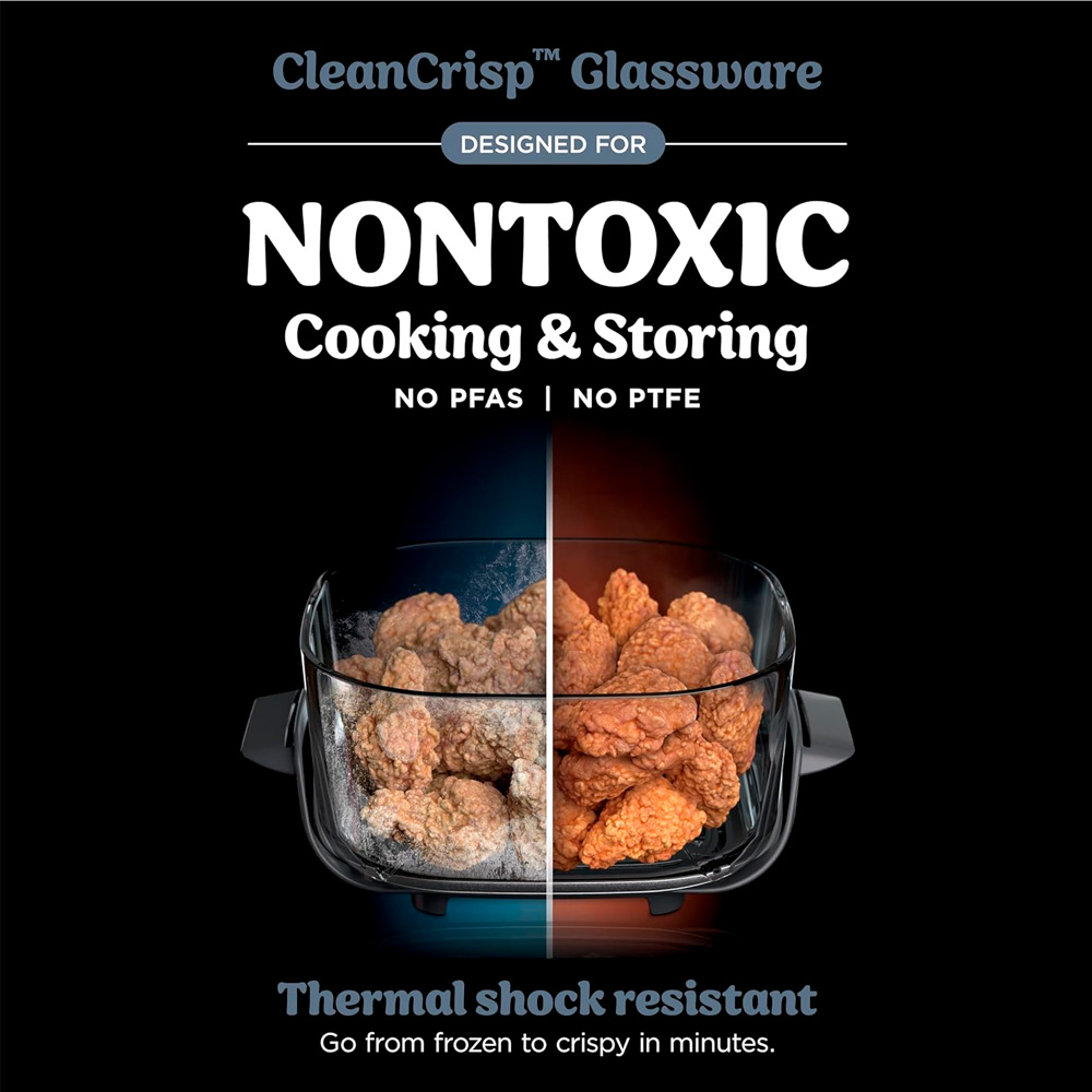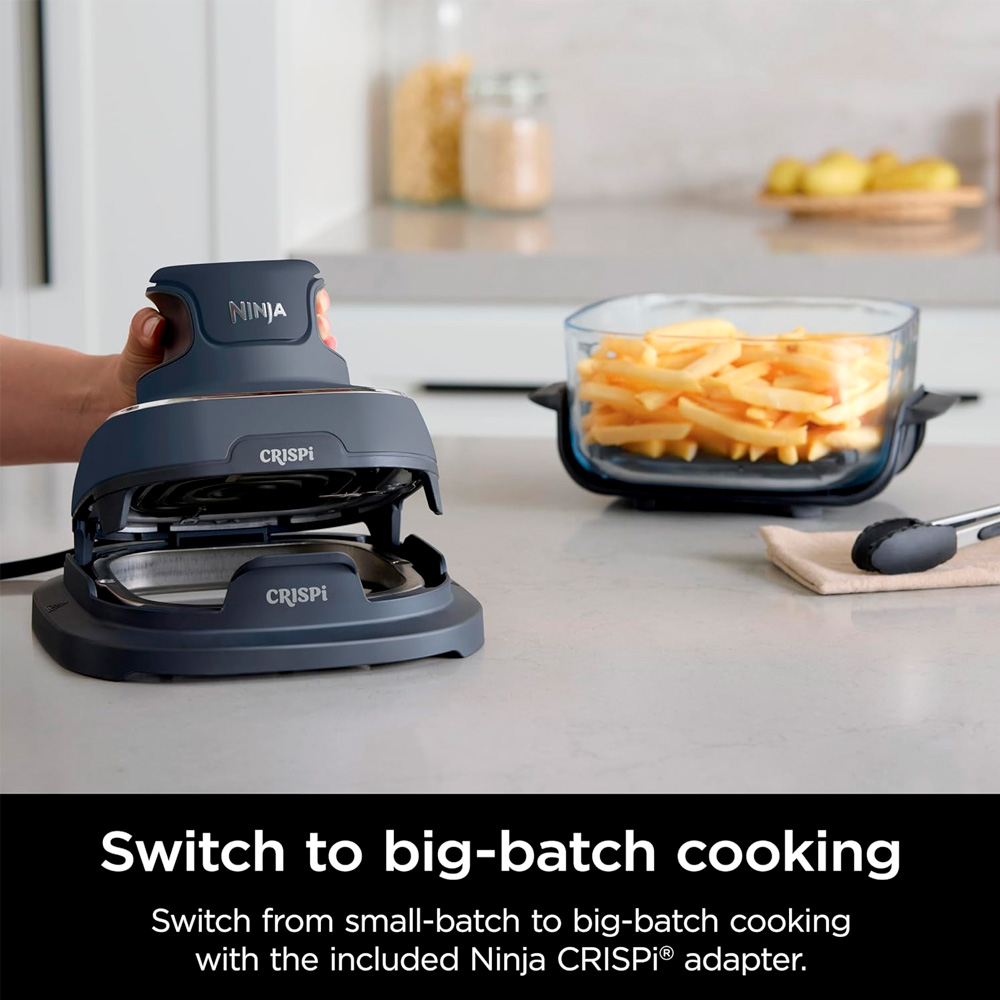 El sistema de cocción portátil de vidrio Ninja Crispi® es un potente aparato compacto que integra la potencia de 1500 W de una freidora de aire estándar* en un diseño portátil. Incluye un recipiente CleanCrisp™ pequeño de 6 tazas y uno más grande de 4 cuartos. Ya sea que prepare comidas rápidas individuales en solo 7 minutos o comparta refrigerios crujientes para llevar, la Ninja Crispi® lo hace muy fácil. Diseñado para cocinar y almacenar sin tóxicos, sin químicos permanentes como PFAS y PTFE. Todos los accesorios Crispi son aptos para lavavajillas y encajables para facilitar su limpieza y almacenamiento. *Basado en potencia en comparación con la Ninja AF100.