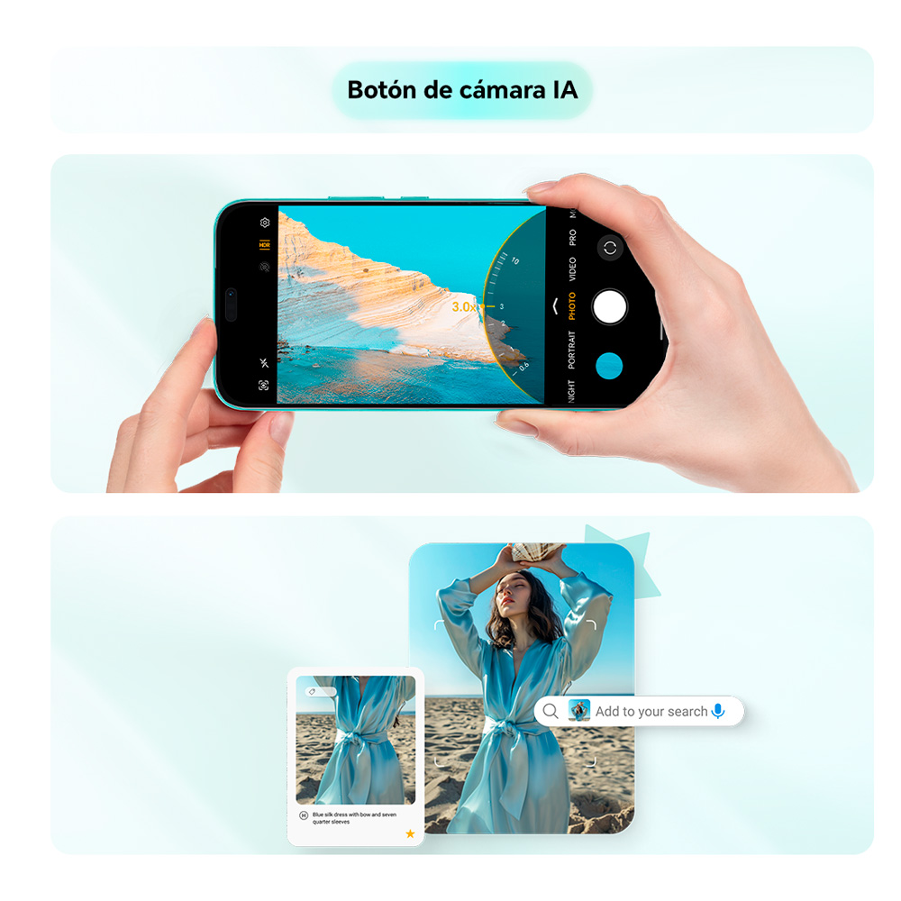Pantalla premium AMOLED de 120 Hz con alto brillo, ideal para contenidos multimedia y juegos fluidos. Cámara principal de 108 MP para capturar detalles finos, junto con cámara ultrawide para tomas amplias. Generosa batería que permite uso prolongado, incluso con pantalla y conectividad exigentes. Almacenamiento amplio de 256 GB, sin preocuparse por espacio. Diseño ligero, moderno y cómodo para uso diario; sistema actualizado con funciones de última generación (Android 15 + MagicOS 9).