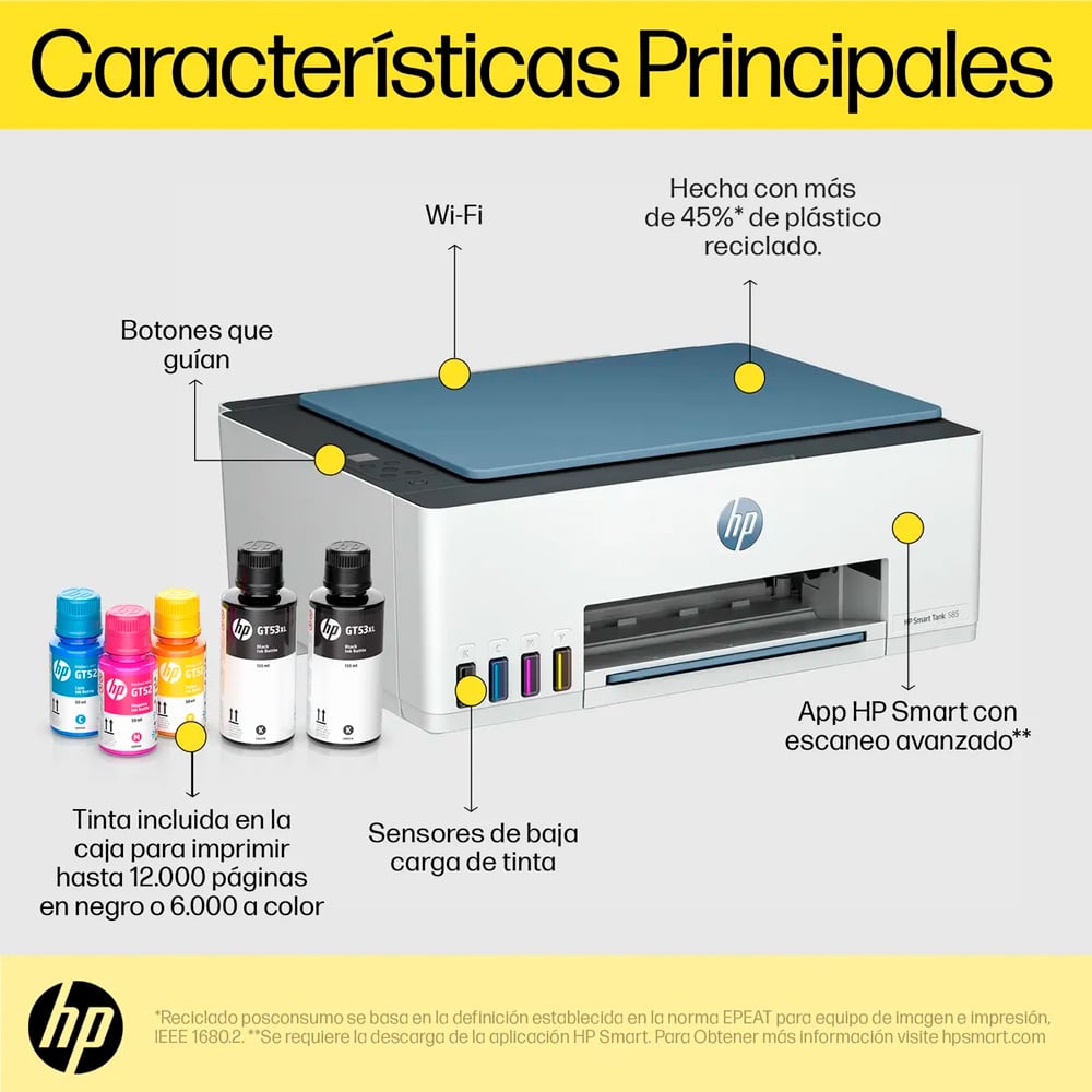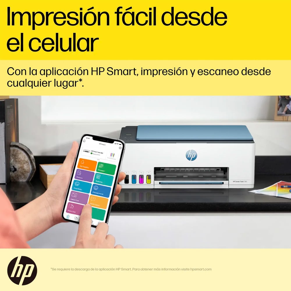 Disfrute de confiabilidad diaria con la impresora HP Smart Tank 580 Todo-en- Uno que ofrece la calidad HP que usted espera y ahorros sorprendentes