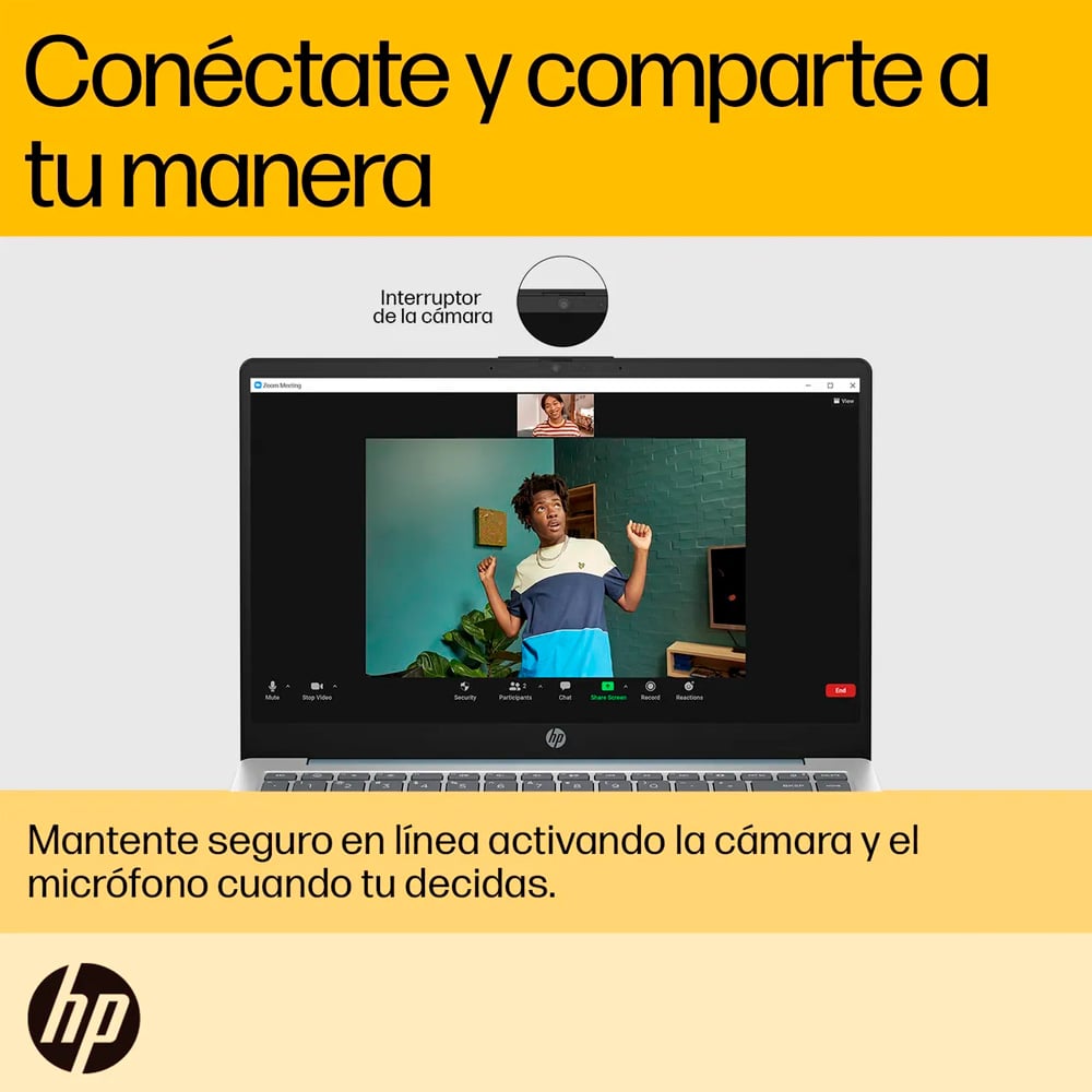 Cámara FHD HP True Vision de 1080p con reducción de ruido temporal y micrófonos digitales integrados de doble matriz