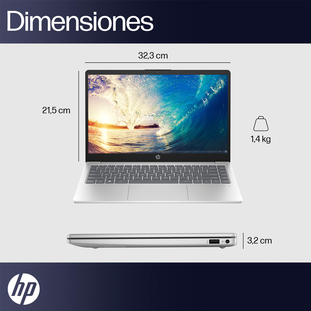 La laptop HP de 14 pulgadas incluye todas las funciones que necesitas para hacer todo lo que quieras sin sacrificar tu rentabilidad ni el planeta. Con un diseño responsable, este potente ordenador cuenta con un procesador Intel® y un amplio almacenamiento para realizar una gran cantidad de tareas sin esfuerzo. Además, contiene plásticos reciclados post consumo destinados a acabar en el océano y cuenta con las certificaciones EPEAT® Gold y ENERGY STAR® . Disfruta de la potencia y la capacidad de respuesta premium para hacer muchas más cosas. Crea, edita y comparte contenido con facilidad y disfruta de experiencias de entretenimiento inmersivas en HD.