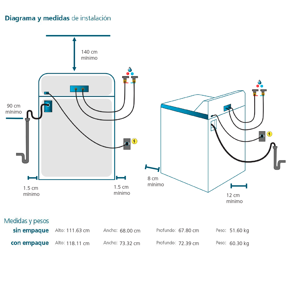 Carga superior, 22Kg, con agitador, 11 ciclos automáticos, 4 niveles de centrifugado más automático