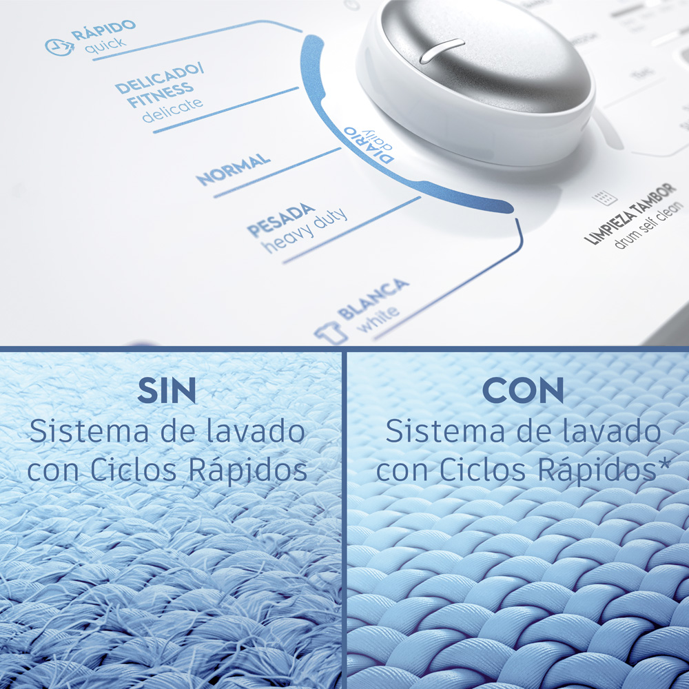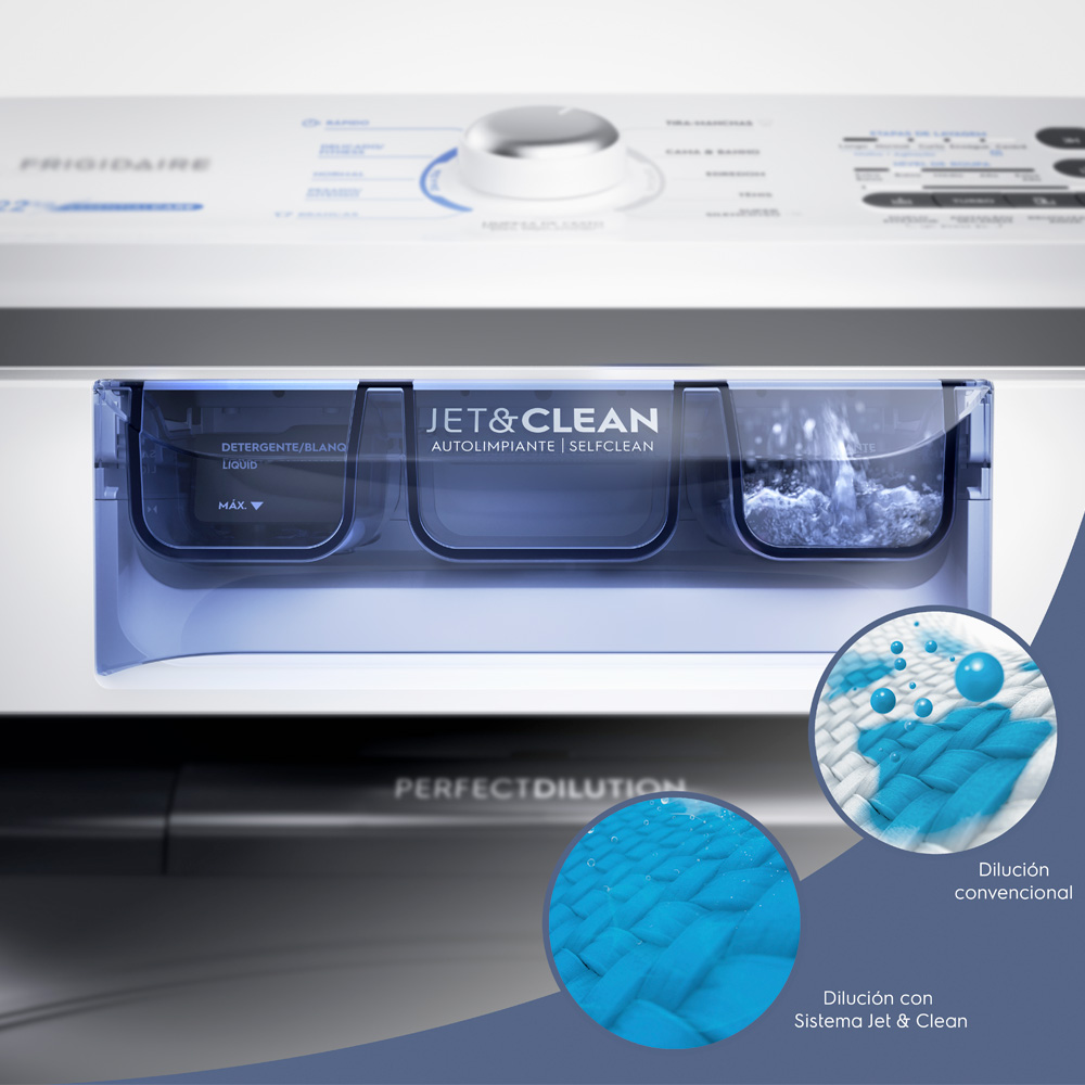 Carga superior, 22Kg, sin agitador, filtro atrapa pelusa, tina de Acero Inoxidable, programa rápido