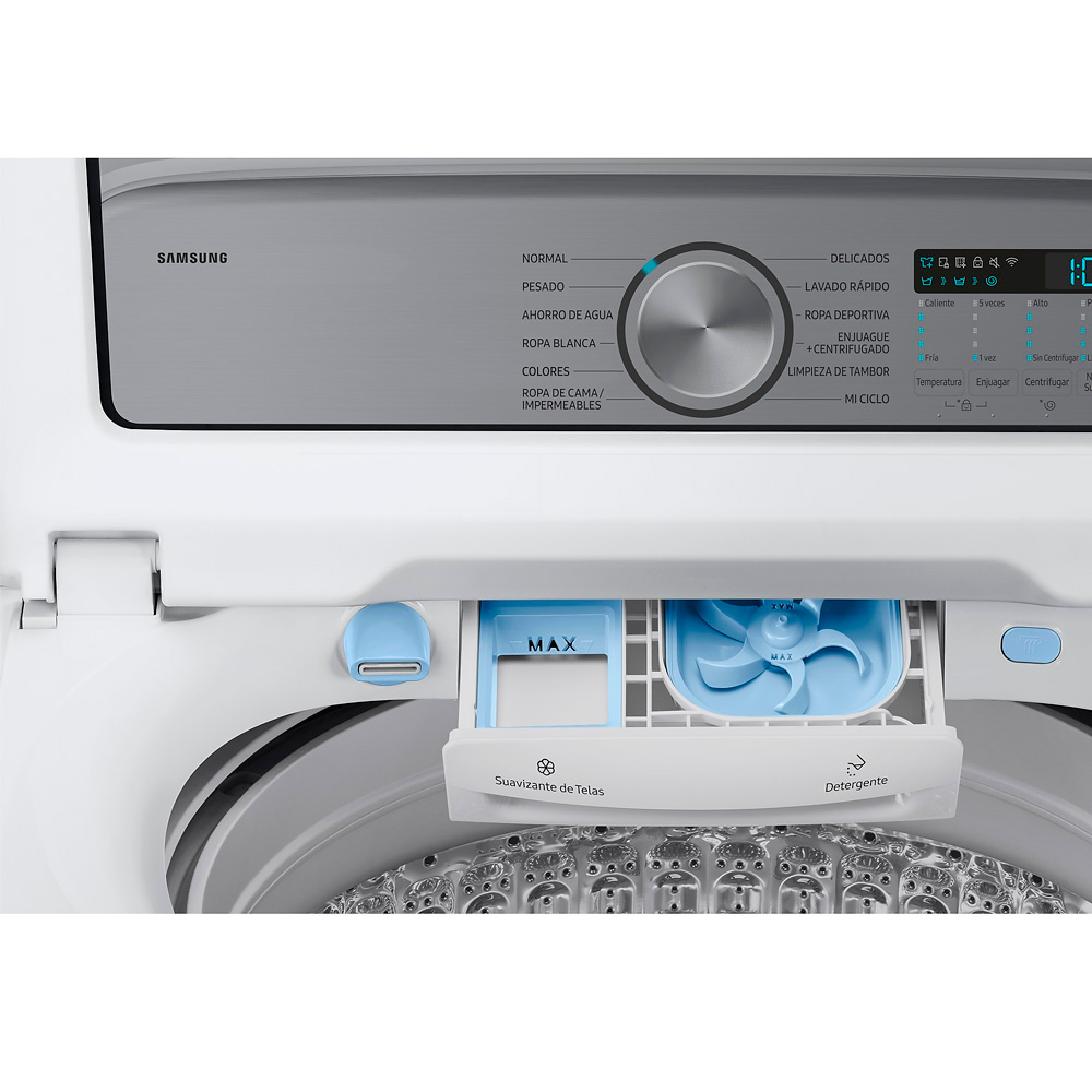 La lavadora Samsung de 26 kg con tecnología Super Speed está diseñada para ofrecer máximo rendimiento, gran capacidad y comodidad en cada lavado. Su tambor Swirl+ cuida las prendas reduciendo el desgaste, mientras el Motor Digital Inverter (DIT) garantiza potencia, eficiencia energética y durabilidad. Equipada con funciones inteligentes como SmartThings, Control Inteligente y Cuidado Inteligente, permite personalizar y monitorear el ciclo desde tu dispositivo móvil gracias a su Wi-Fi integrado. Incorpora innovaciones como Active Water Jet, Deep Fill y VRT Plus™, que minimizan vibraciones y optimizan el lavado incluso con cargas pesadas. Además, ofrece 5 niveles de suciedad, 5 niveles de giro y 5 opciones de temperatura, con una velocidad de centrifugado de 750 rpm para resultados más rápidos y efectivos.