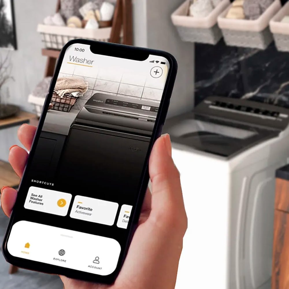Lavadora Smart Appliance de 26kgs que cuenta con conectividad Wi-Fi compatible con iOS y Android, recibe notificaciones, mantente conectado y con el control desde cualquier lugar. Con tecnología Xpert System, agitador tipo Impeller 3D