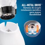 Motor cuatro veces más duradero* Acople metálico 10 más fuerte** Jarra de plástico, que te permite procesar ingredientes hirviendo sin necesidad de esperar a que estos se enfríen Dos velocidades con pulso Capacidad de 1.5 litros para preparar desde sopas hasta jugos, salsas y bebidas gratinadas con hielo Revolucionaria cuchilla trituradora de hielo Color: Blanco *Comparado con el motor del modelo PU5443127