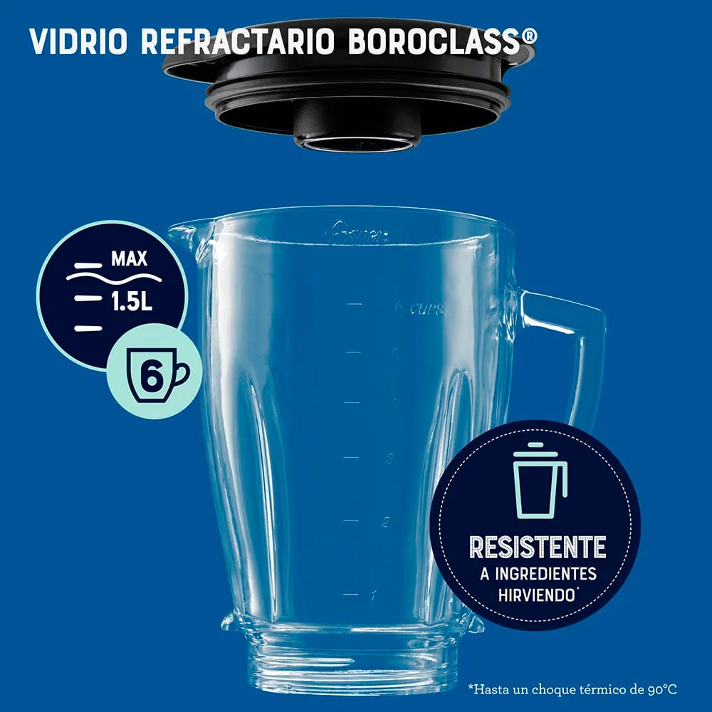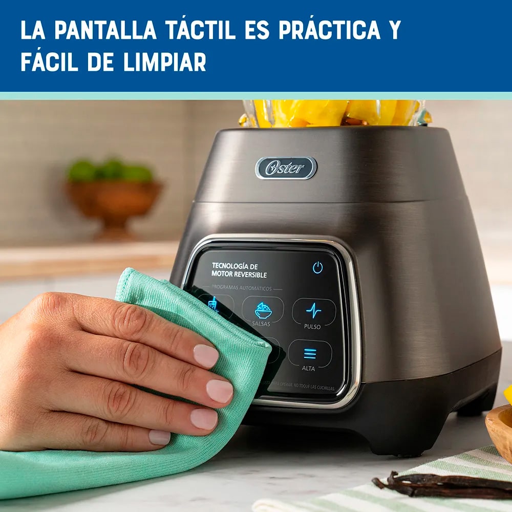 La nueva Licuadora Oster® con pantalla táctil y Tecnología de Motor Reversible ofrece una nueva cuchilla dos veces más grande con seis aspas de acero inoxidable. Su potente motor con 1000 W de potencia y tecnología de motor reversible