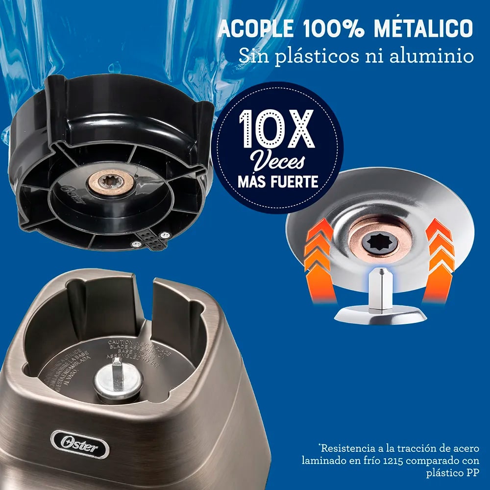 *Hasta un choque térmico de 90° **Comparada con la cuchilla Oster® BLSTAA4961 ***Comprobado en pruebas de resistencia a la tracción de acero laminado en frío 1215 comparado con plástico PP ****Potencia pico