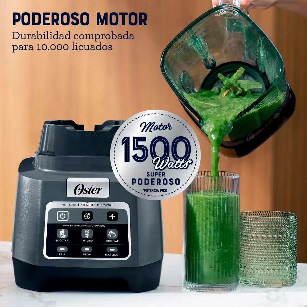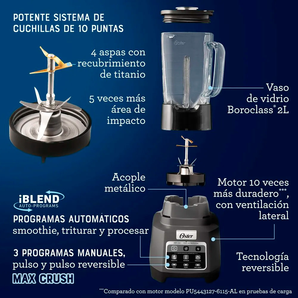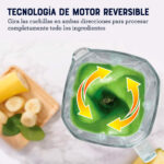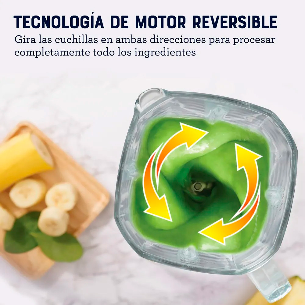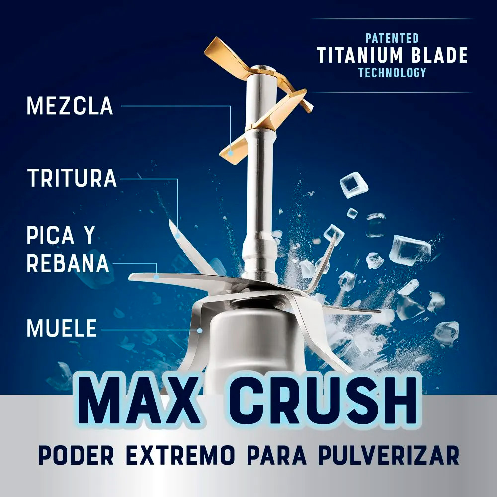 Cuchilla con patented Titanium Blade Technology de 4 niveles y 10 aspas que ofrece 5 veces más área de impacto para texturas más uniformes. Pulveriza con precisión ingredientes duros y fibrosos en segundos