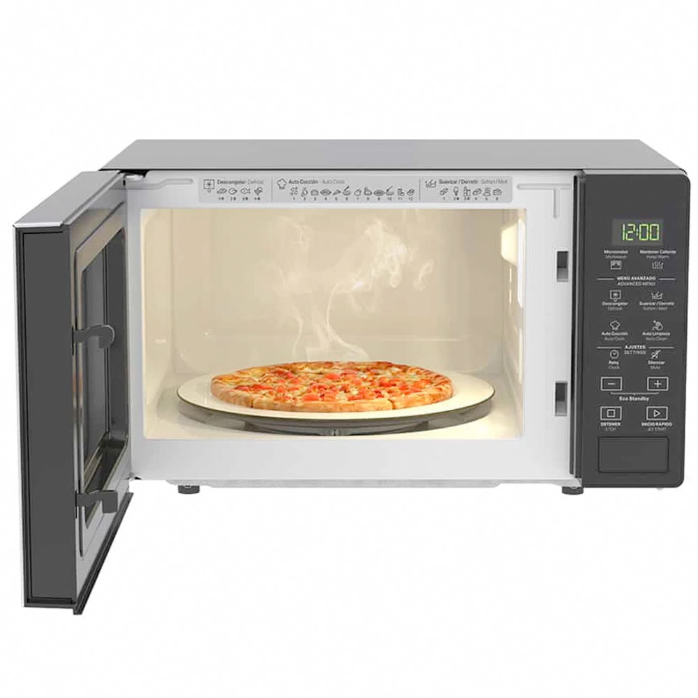 Con 4 opciones para descongelar, función Mantener Caliente, Autolimpieza, Modo Ahorro de Energía