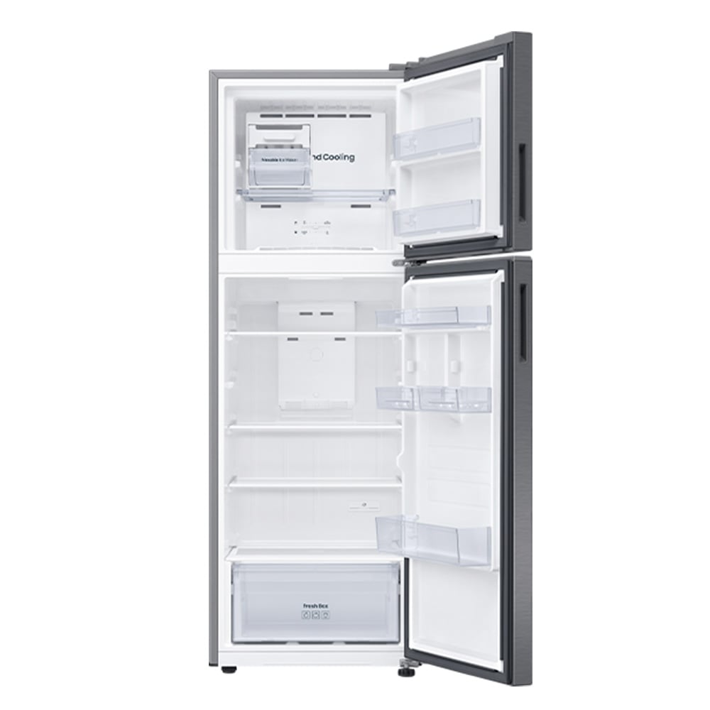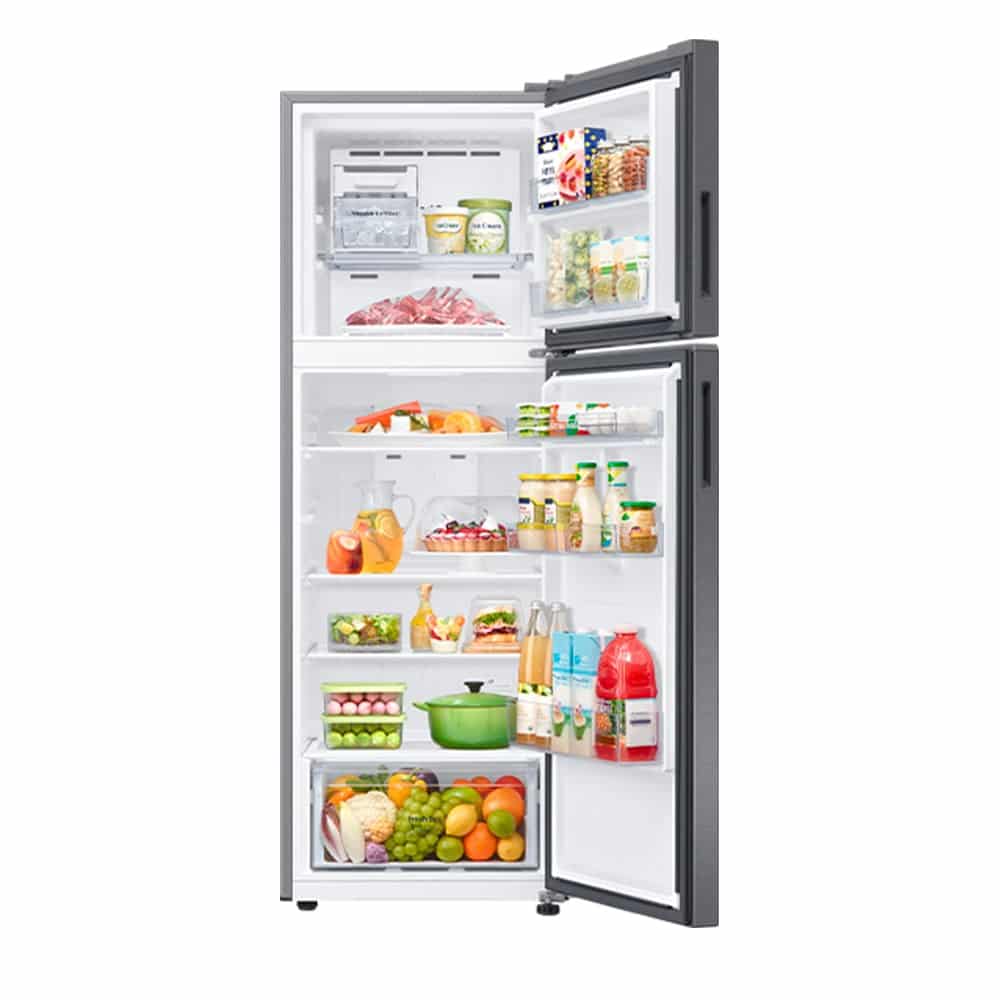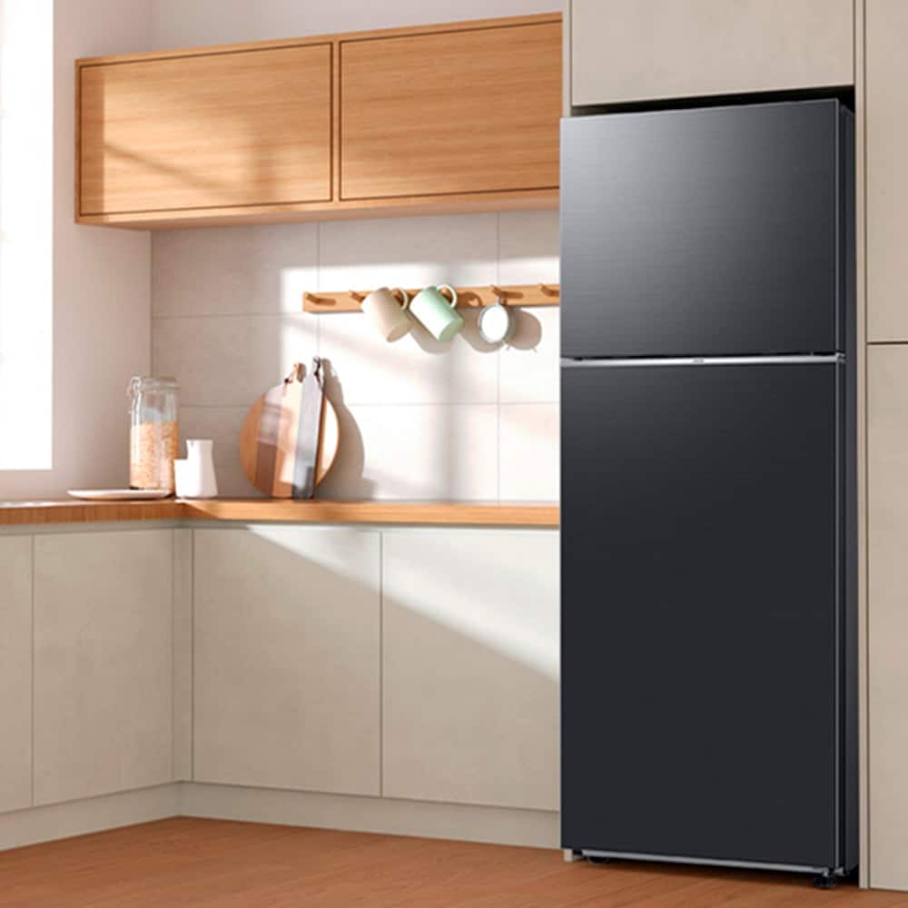 El Samsung RT31DG5124S9AP es un refrigerador tipo Top-Mount Freezer con 302 L de capacidad neta, diseñado para optimizar la frescura, eficiencia y estilo en espacios compactos. Equipa un compresor Digital Inverter que garantiza un funcionamiento silencioso, duradero y eficiente energéticamente, con soporte de conectividad Wi-Fi y control inteligente mediante la app SmartThings. Gracias al modo AI Energy Mode, ajusta automáticamente el compresor y los ciclos de descongelamiento según tu uso diario, logrando hasta un 10 % de ahorro energético. Además, integra SpaceMax™, que maximiza el espacio interior con paredes más delgadas, y el sistema de enfriamiento All-Around Cooling combinado con No Frost y Multi Flow, para una distribución del frío uniforme y sin escarcha. Su diseño moderno incluye puertas planas con manijas empotradas, estantes de cristal templado, iluminación LED interna, gaveta para frutas y vegetales, y una elegante presentación en color plateado.
