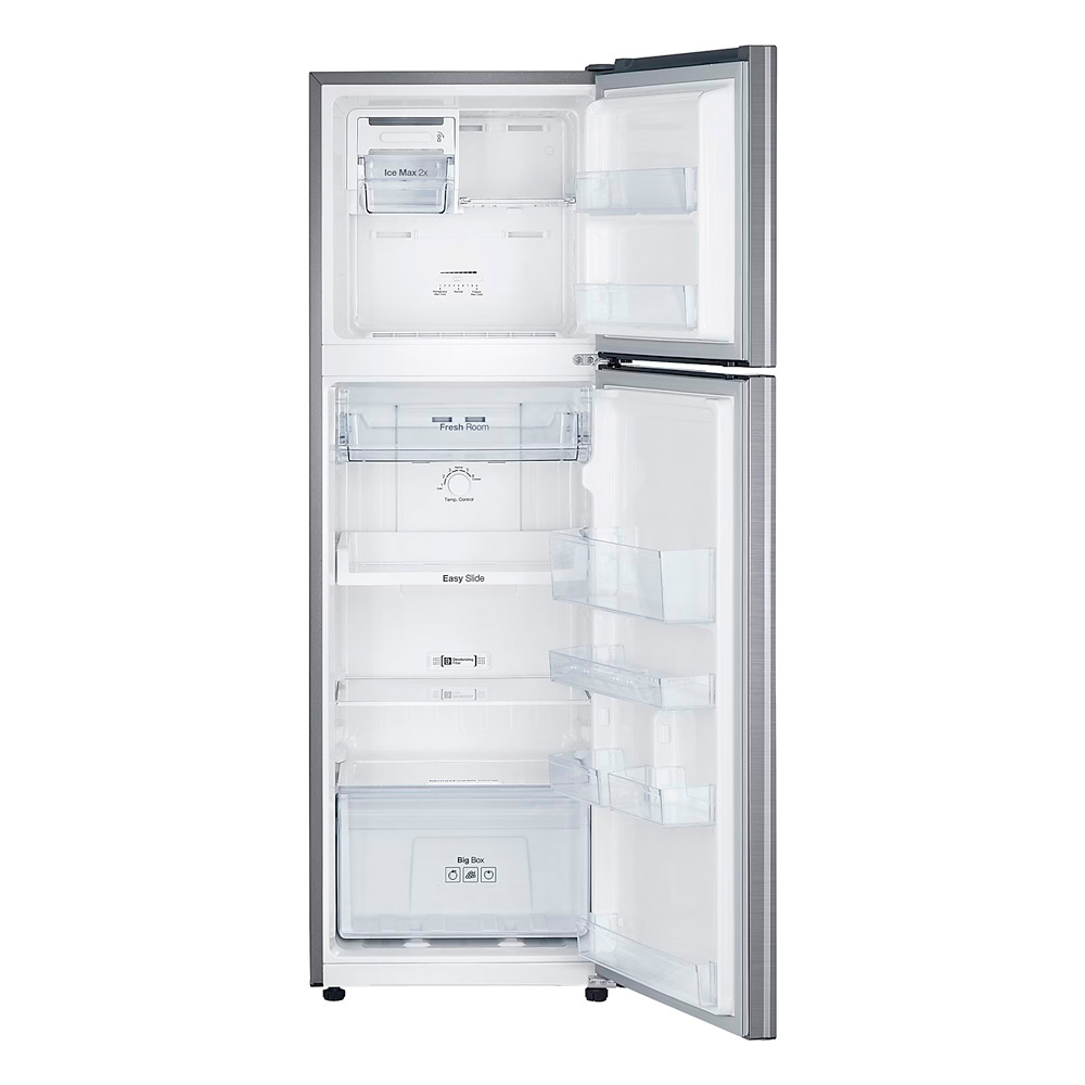 El Samsung RTF380G (RT25FARADS8) es un refrigerador de 255 L que equilibra eficiencia, funcionalidad y diseño compacto. Su sistema de enfriamiento All-Around Cooling garantiza una temperatura uniforme en todo el interior, mientras que su compresor Digital Inverter, altamente eficiente, consume menos energía y ofrece una durabilidad prolongada. Cuenta con estantes de cristal templado resistentes hasta 150 kg, iluminación interior LED, estante deslizante Easy Slide para facilitar el acceso a los alimentos y mantenerlos organizados, además de filtro desodorizante que ayuda a conservar aromas y sabores. En el congelador incluye un fabricador de hielo tipo Twist, estante de plástico y dos compartimientos en la puerta.