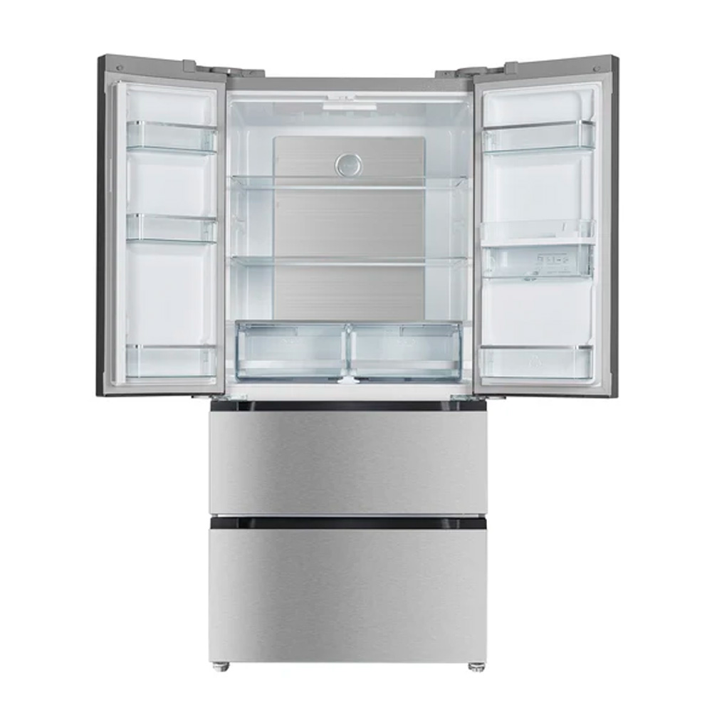 El refrigerador French Door de 558 litros (20 pies³) ofrece máxima frescura y eficiencia con su sistema Cool Flow 360, que distribuye el aire frío de forma envolvente evitando la formación de escarcha. Su tecnología Inverter optimiza el rendimiento del compresor para un ahorro inteligente de energía. Diseñado para la comodidad, cuenta con puertas tipo French Door, dos gavetas en el congelador y un práctico dispensador de agua fría con llenado manual, ideal para mantener todos tus alimentos organizados, frescos y siempre al alcance.
