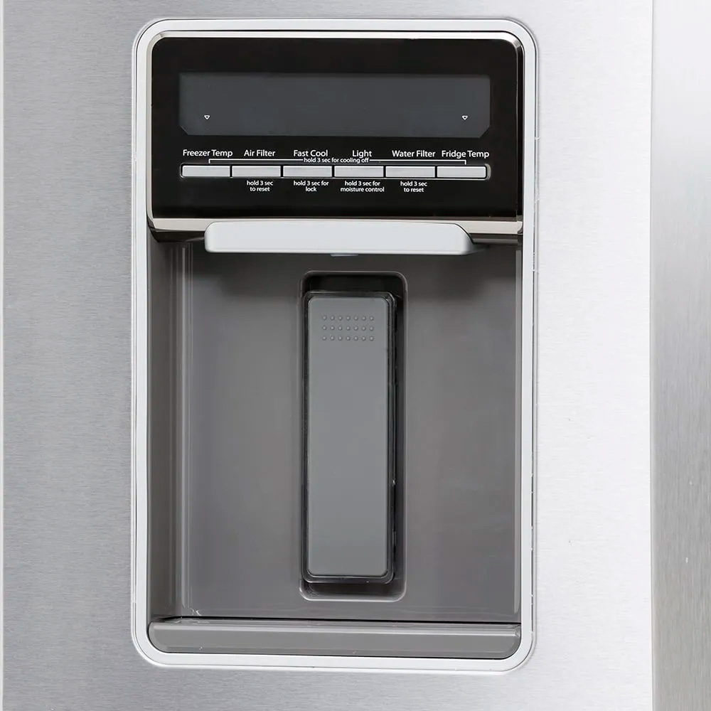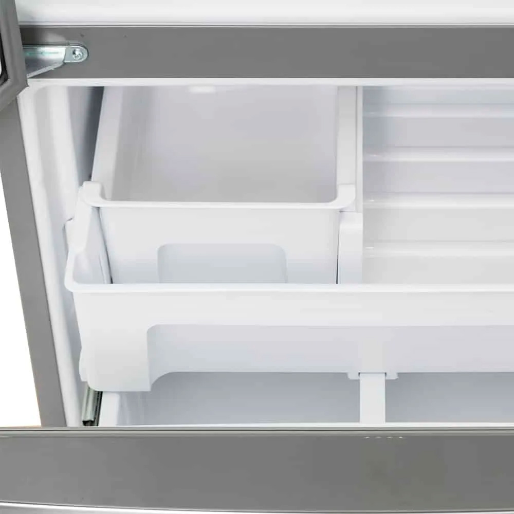 Refrigerador French Door con filtro de aire FreshFlow, sistema de filtración EveryDrop, sistema de deshielo, dispensador de agua exterior, iluminación LED y fábrica de hielo. Además, te brinda el espacio perfecto para tus alimentos gracias a sus 2 parrillas ajustables de cristal templado, 1 parrilla fija de cristal templado, 2 cajones para frutas y verduras, 1 cajón para carnes frías y 5 anaqueles con capacidad de galón.