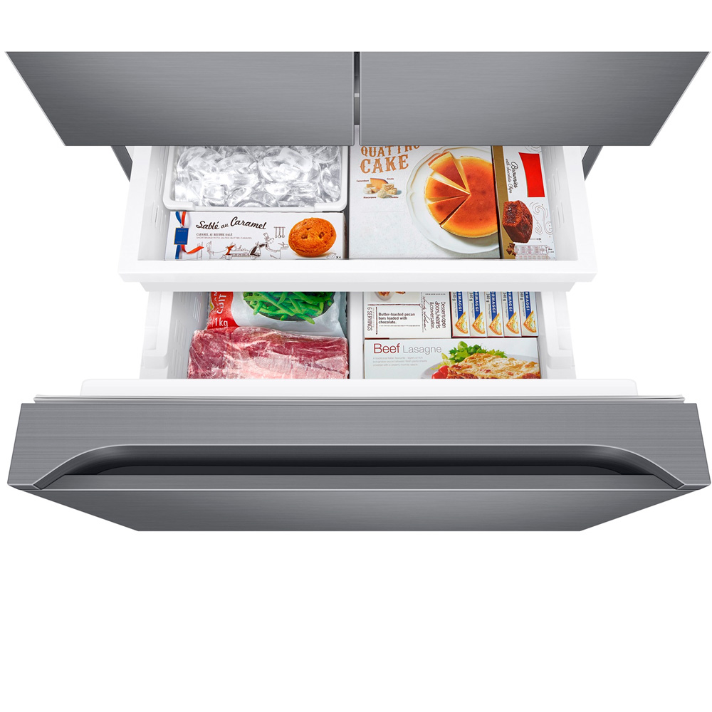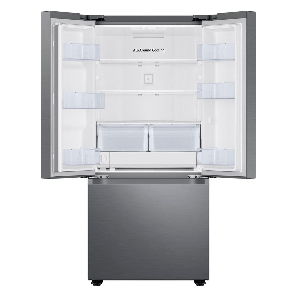 El Samsung RF4500A French Door de 22 cu ft ofrece una combinación ideal de capacidad generosa, diseño exquisito y funciones inteligentes. Su innovador sistema All-Around Cooling garantiza enfriamiento eficiente en cada rincón, mientras que el Power Cool / Power Freeze permite enfriar o congelar al instante lo que necesites. Disfruta de agua filtrada al alcance de tu mano con su dispensador interno, sin sacrificar espacio. Además, cuenta con una distribución inteligente con estantes de vidrio templado, cajones con control de humedad y una hielera automática. Con iluminación LED interior y acabados elegantes en “Refined Inox”, este refrigerador combina estilo y funcionalidad con eficiencia eléctrica y cuidado ambiental.