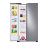 El Samsung RS23T5B00S9/AP es un refrigerador Side-by-Side de 22.8 pies³ (700 L) que ofrece más espacio interno sin cambiar su tamaño exterior, gracias a su innovadora SpaceMax Technology™ Su compresor Digital Inverter, eficiente y duradero, adapta la velocidad según las necesidades de enfriamiento, reduciendo el consumo de energía hasta en un 50 %, con certificación de funcionamiento de hasta 21 años y 20 años de garantía del compresor. Cuenta con Enfriamiento Envolvente (All-Around Cooling) y conducto trasero plano, que aseguran una temperatura uniforme en todo el equipo y aprovechan mejor el espacio disponible. Además, incluye las funciones rápidas Power Cool y Power Freeze, ideales para enfriar bebidas o congelar alimentos al instante.