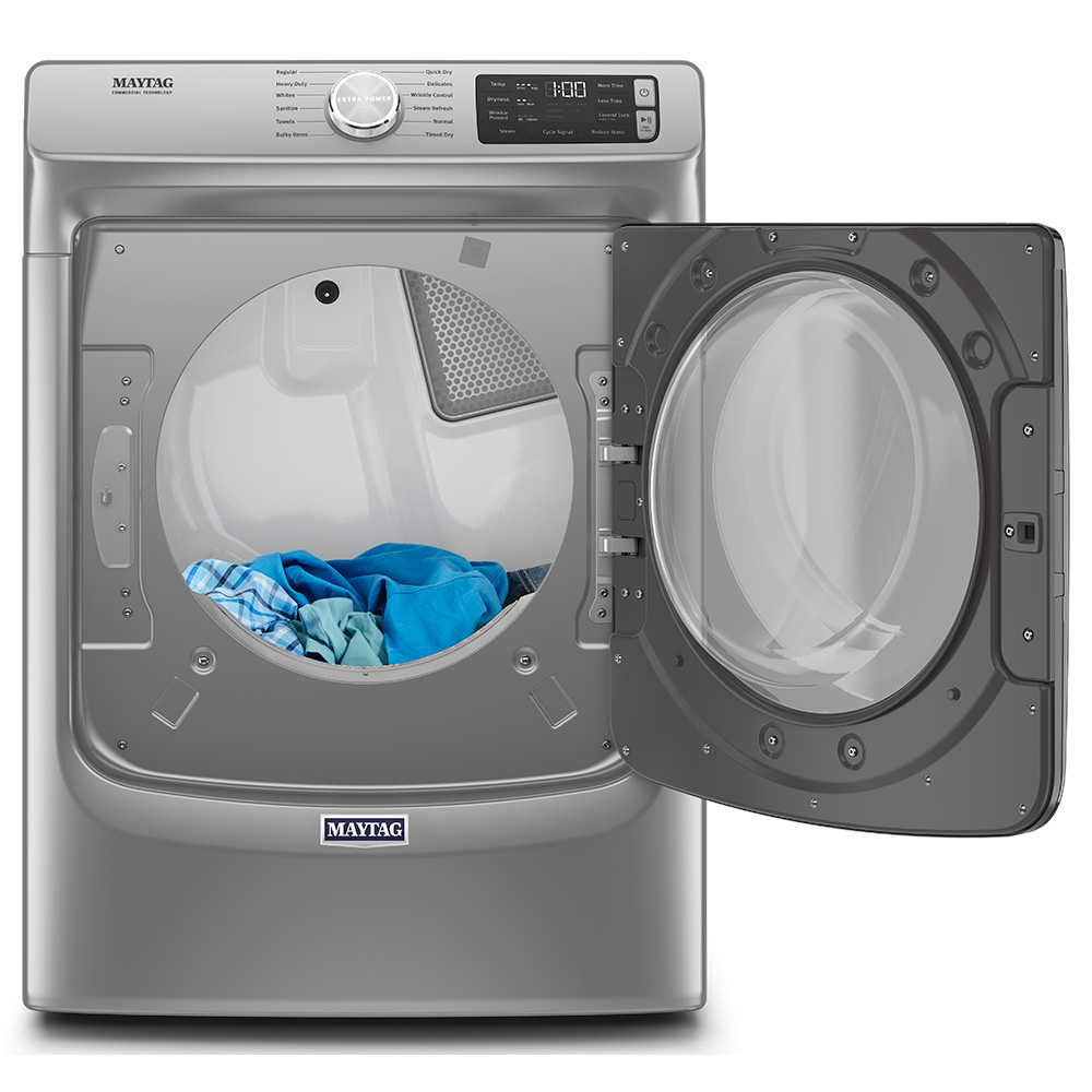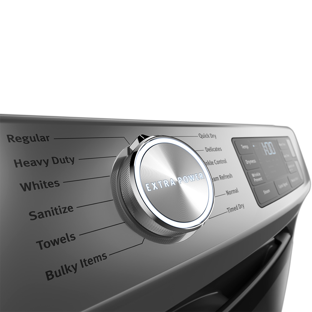 Cuando mezcle jeans gruesos con camisas delgadas en la secadora, presione el botón Extra Power para secar telas gruesas, bolsillos, dobladillos y costuras más secas desde el primer uso. El sensor de humedad avanzado monitorea la humedad interior y la temperatura del aire para secar cargas pesadas de manera uniforme y completa. Seleccione ciclos y opciones con vapor mejorado que ayudan a prevenir arrugas, refrescar la ropa y reducir la estática.