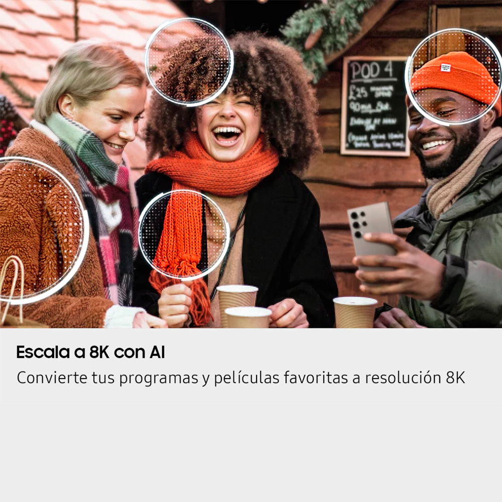 Claridad 8K espectacular: disfruta de detalles nítidos con Mini-LED y procesamiento IA. Escalado AI Pro: mejora automáticamente la calidad visual de cualquier contenido. Audio que se adapta al contenido: sonido inmersivo sin necesidad de altavoces externos. Optimizado para gamers: fluidez total con funciones gaming avanzadas (ALLM, VRR). Control inteligente con IA: navegación intuitiva y conectividad total. Diseño elegante y moderno: ideal para ambientes premium y sofisticados.