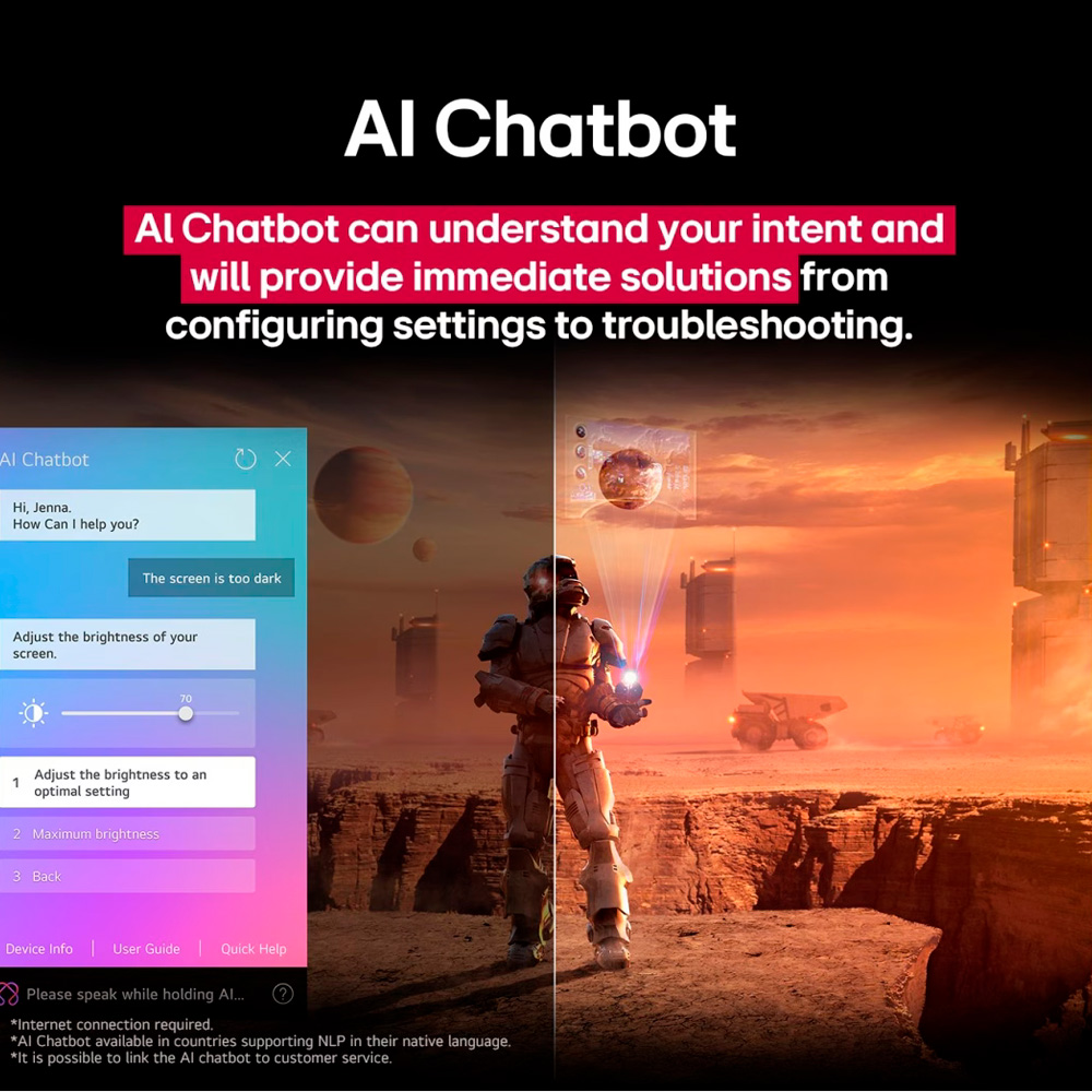 Este televisor de 75 pulgadas combina una experiencia visual y sonora de alta gama con funciones inteligentes avanzadas. Está potenciado por el procesador α7 AI Gen8, que mejora significativamente la nitidez, el brillo y el detalle mediante superescalado 4K y soporte para HDR10 Pro, ofreciendo imágenes vibrantes y cinematográficas. Diseñado para un entretenimiento intuitivo, inteligencia artificial, controles de voz, funciones tipo “arrastrar y soltar” y herramientas como AI Voice ID, AI Search, AI Chatbot, AI Concierge, AI Picture Wizard y AI Sound Wizard, adaptando automáticamente imagen y sonido a tus preferencias. Su plataforma webOS Re:New garantiza actualizaciones regulares durante cinco años, reforzando la experiencia de usuario y la seguridad digital, incluyendo reconocimiento en los CES Innovation Awards 2025 por su enfoque en ciberseguridad.