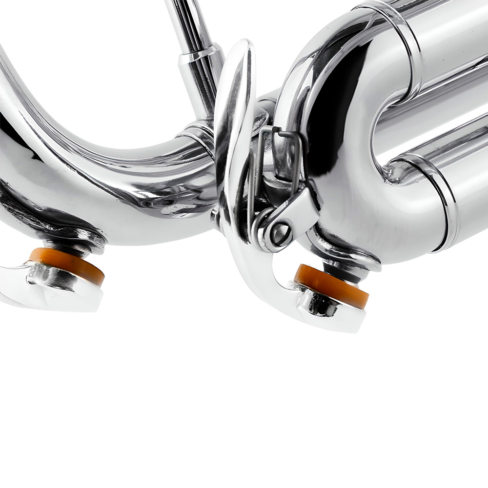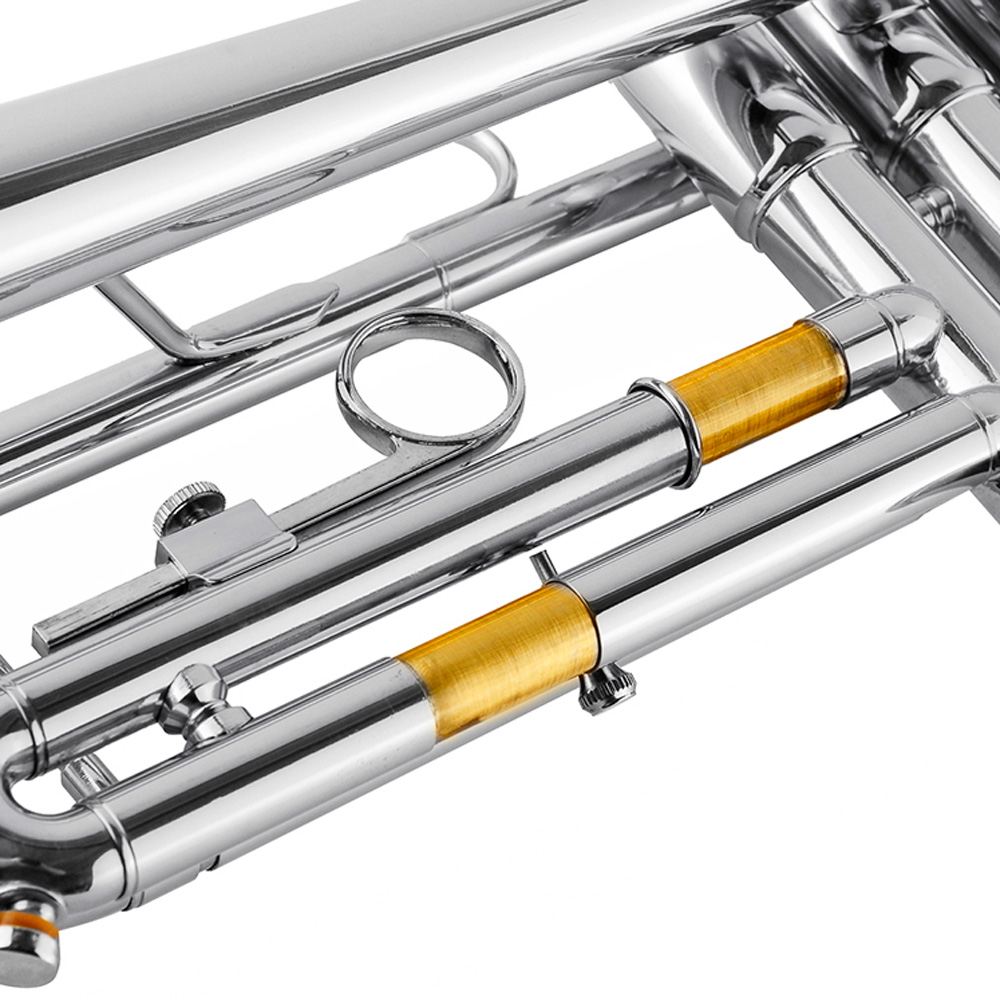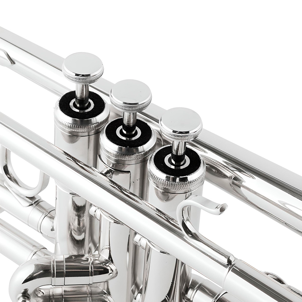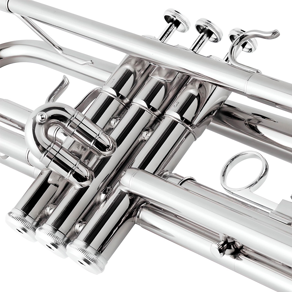 Lacado en color Niquel. Pistones de cuproníquel que proporciona un mejor rendimiento. Fabricado en Latón para mayor resistencia al desgaste. La campana de gran tamaño produce sonidos más potentes. Produce más resonancia que trompetas similares. Proporciona un mejor rendimiento y estilo. El Diseño ergonómico permite un mejor control de estabilidad. El receptor de boquilla también permite que se adjunten otros tipos de boquillas. Ofrece un mejor Ajuste de boquilla.
